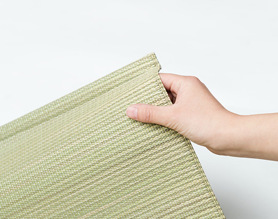 特に「無染土」シリーズにおいては、畳表などに色付け・乾燥促進として必ず使用される「染土」を使用せず、無添加・無着色の自然そのままの「い草」を使用したナチュラルなこだわりのラインナップとなっております。また、「い草」の高い抗菌性により、適切なお手入れをして頂けますと7~8年もの間その機能を保持し、そのままでのご使用が可能です。