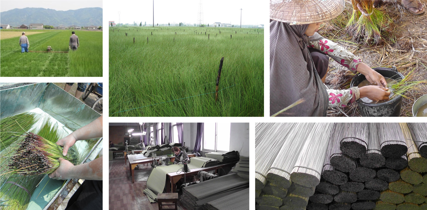 日本人の生活に根差してきた伝統素材「い草」。「調湿効果」「抗菌効果」「リラクゼーション効果」など様々な機能を持つすぐれた植物であり、日本の住環境と共に歩んできた歴史ある素材です。しかしながら現在、化学繊維のシェア拡大・和室の減少により著しく需要は落ち込み、「い草」の良さが忘れられつつあります。